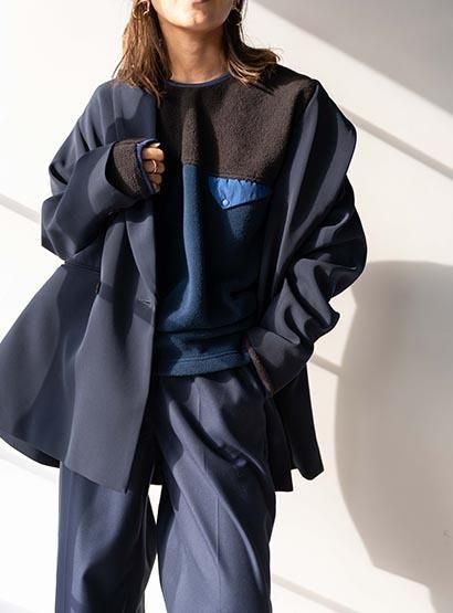 '25WINTER SIlk Mohair-Wool Border Knit navy