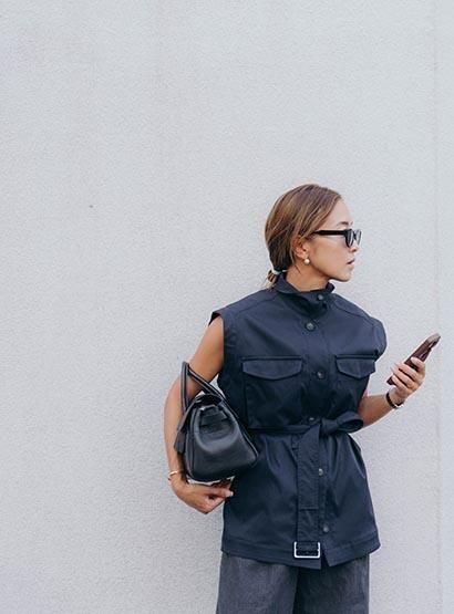 ‘25PRE FALL Sleeve-less Trench Jacket navy