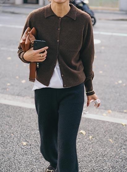 '25WINTER SIlk Mohair-Wool Border Knit navy