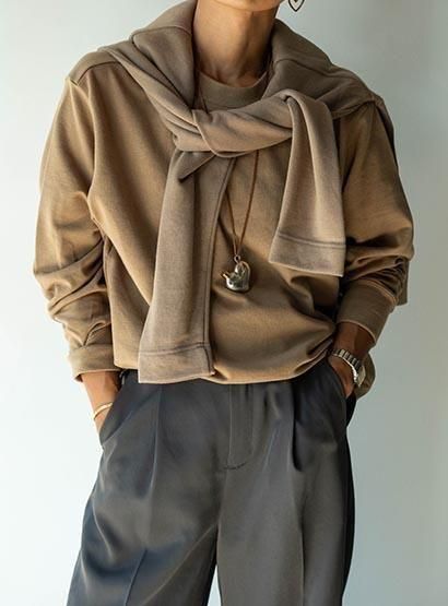 パンツやスカート、どのアイテムに合わせても上品さが残るので